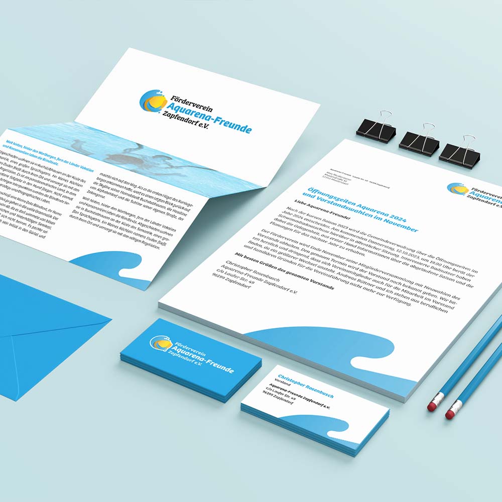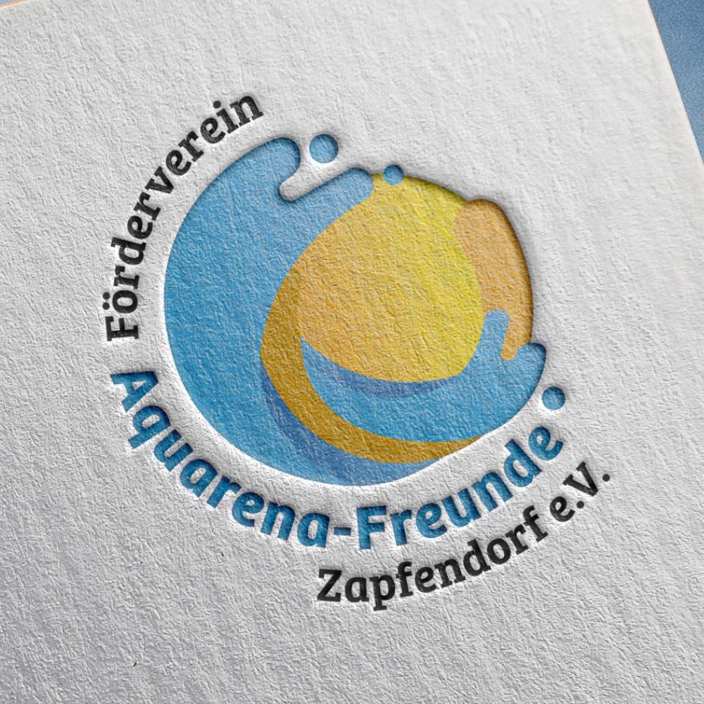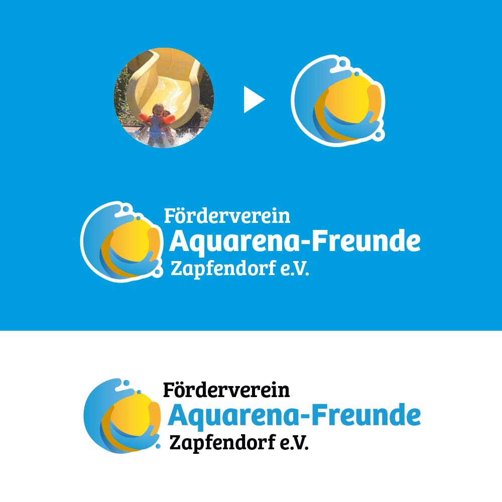 Das Aquarena in Zapfendorf ist mehr als nur ein Schwimmbad – es ist ein Ort für Erholung, Bewegung, Begegnung und Gemeinschaft. Damit das so bleibt, braucht es einen Förderverein und viel ehrenamtlichen Einsatz. Im Logo findet sich die gelbe 120 m lange Rutsche, welche sich über Jahrzehnte zum Markenzeichen des Aquarenas entwickelt hat, in abstrakter Form wieder.