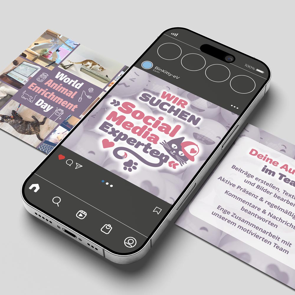 Da ich selbst zwei ehemalige Strassenkatzen besitze, freue ich mich umso mehr dem Verein mit BinKitty Logo, Website und im Social Media Bereich weiter zu helfen. „Alles für die Katz“ geben, ehrenamtlich selbstverständlich.